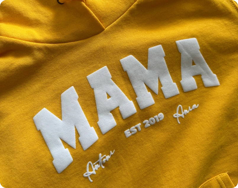 Nadruk cyfrowy wykonywany bezpośrednio na specjalnej folii PET, a następnie przenoszony na tkaninę za pomocą ciepła i ciśnienia.